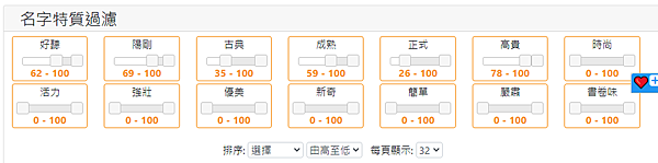 這個功能也是倉鼠印象深刻的地方,你可以非常自由的拖曳每個關鍵字的滾輪,選出這個名字所傳達出來的偏向風格。對了,下面還有一些排序和每頁顯示的方式可以切換更改唷。