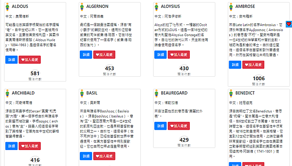 你看!英文名字就這樣熱騰騰的顯示在頁面下方了,而且也附上的敘述說明和關注次數,你就可以大概知道這個名字的涵義還有它受歡迎的程度囉